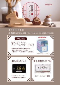 E会員様&LINEお友達〈カードをお持ちのお客様対象〉 ご来店毎にお好きな1点プレゼント!!