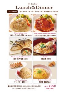 ●炒飯・餃子セット ●天津飯・唐揚セット ALL990円〈税抜900円〉。