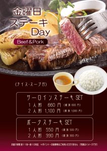 金曜日はステーキセットがお得です!!