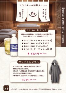 当店のサウナルームご利用のお客様に特別メニューをご用意いたしました。
