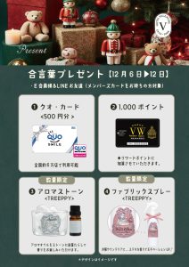 12月のおすすめは TREEPPYの【アロマストーン】又は【ファブックスプレー】を数量限定でご用意しております。